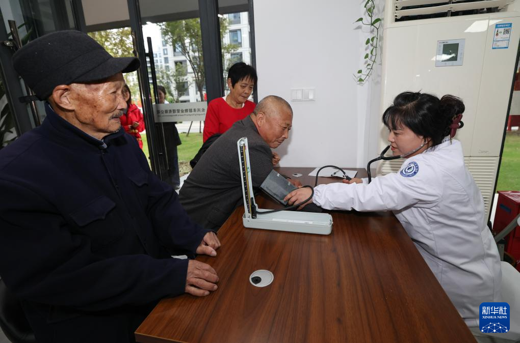 10月21日,醫(yī)務(wù)人員在給老人測(cè)血壓。新華社記者 徐昱 攝