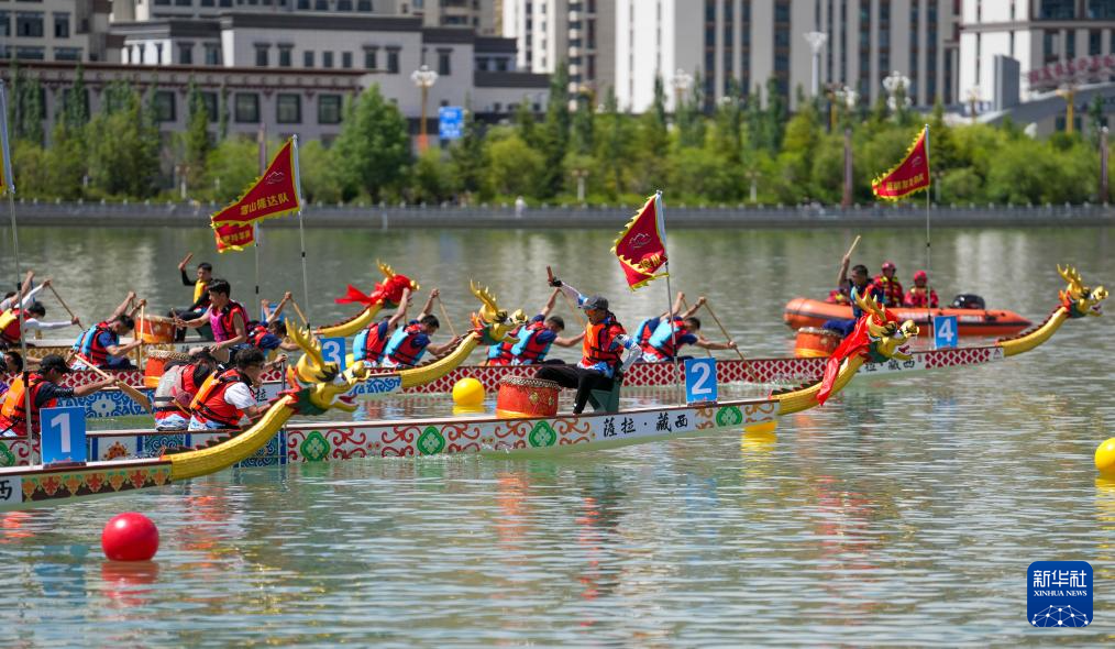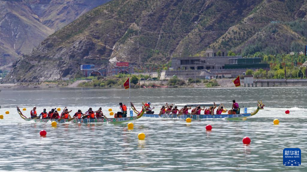 5月31日,參賽隊伍在龍舟比賽中。新華社記者 晉美多吉 攝