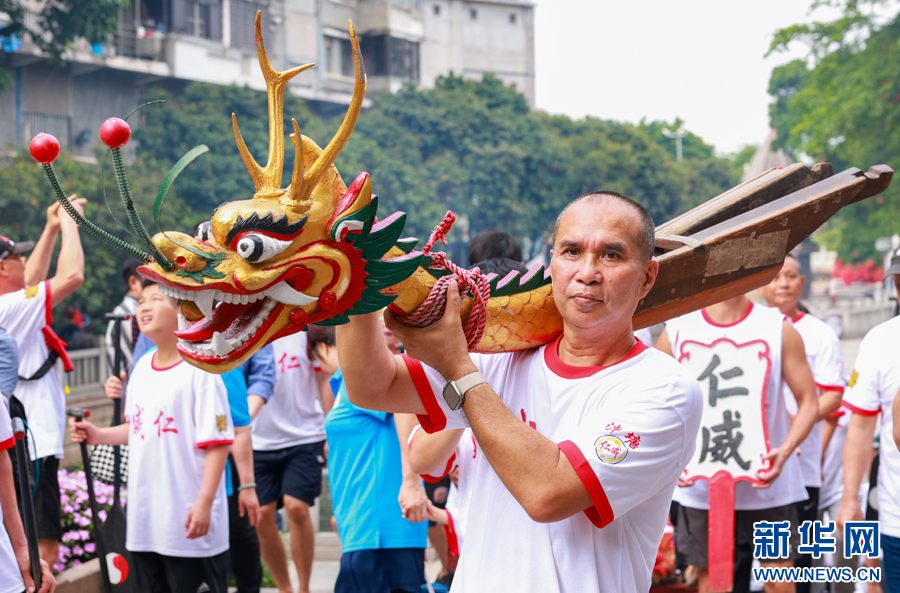 當(dāng)日,“國家非遺道州龍船傳統(tǒng)賽”在湖南永州道縣瀟水河水域開賽,吸引了當(dāng)?shù)亟?00支龍舟隊5000余人同臺競技,奮楫競渡,迎接端午節(jié)的到來。