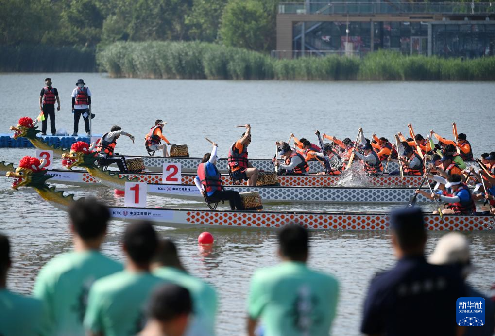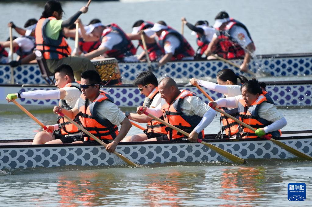 當(dāng)日,2025年天津港保稅區(qū)龍舟大賽在天津空港經(jīng)濟(jì)區(qū)西湖舉行,轄區(qū)內(nèi)的20支企事業(yè)單位代表隊(duì)同臺(tái)競技,奮楫競渡,迎接端午節(jié)的到來。