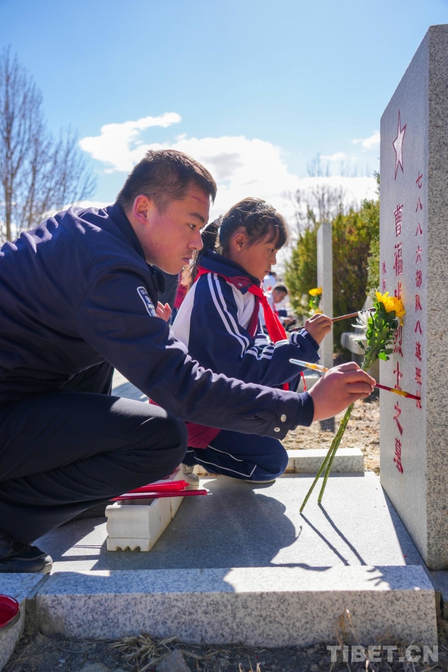 中國西藏網(wǎng)訊 清明前夕,西藏日喀則邊境管理支隊(duì)組織民警前往日喀則市烈士陵園開展祭掃活動(dòng)。大家為墓碑描紅、清掃陵園,以赤誠之心致敬先烈。隨后,民警們一同參觀革命烈士紀(jì)念館,并為少先隊(duì)員宣講英烈事跡,讓紅色基因代代相傳,激勵(lì)警民賡續(xù)紅色血脈、砥礪奮勇前行。(中國西藏網(wǎng) 通訊員/葉軼 記者/德吉卓瑪)