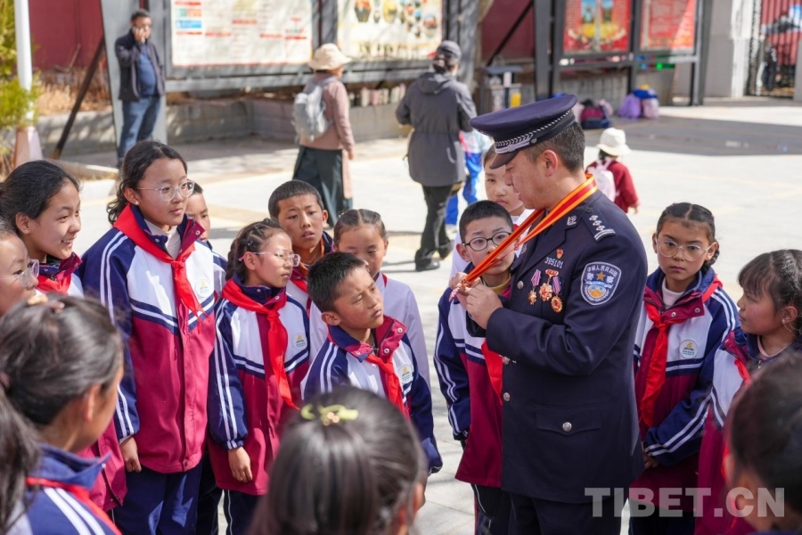 西藏日喀則邊境管理支隊(duì)民警現(xiàn)場為少先隊(duì)員宣講英烈事跡