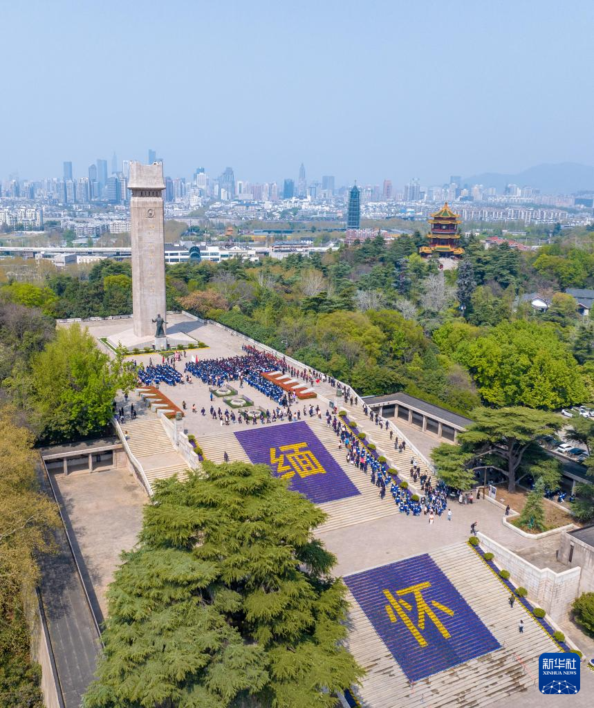 4月2日,各界人士在江蘇南京雨花臺烈士陵園緬懷先烈(無人機照片)。