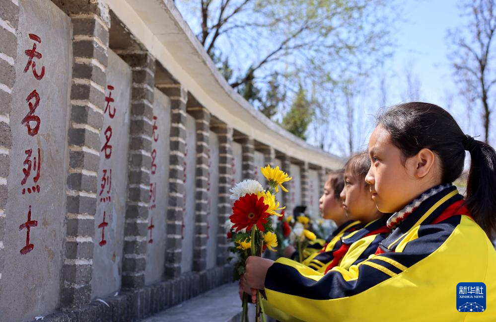 4月2日,河北省遵化市地北頭鎮(zhèn)群眾在魯家峪烈士陵園向無名烈士墓獻花。