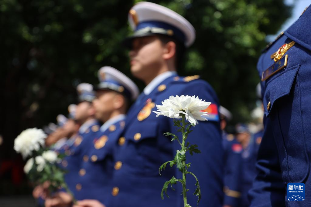 4月2日,福建省廈門市消防救援支隊消防指戰(zhàn)員在葫蘆山烈士陵園烈士紀念碑前緬懷先烈。