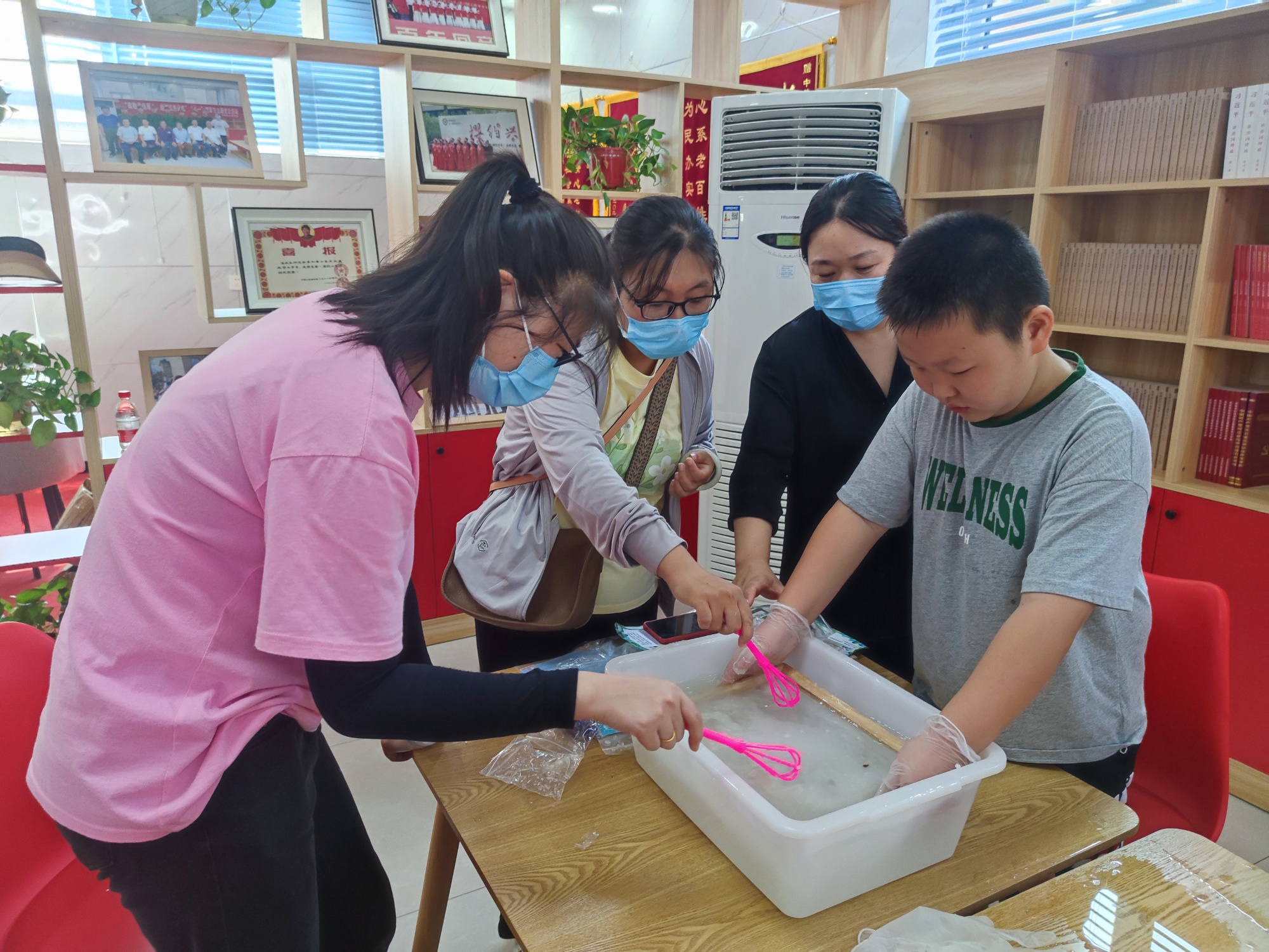 在中鐵社區(qū)群眾活動中心,工作人員為居民介紹了漆包和古法造紙術(shù)的技藝特點,并指導大家親手體驗制作。