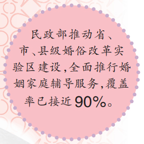 當(dāng)前,民政部先后分兩批確定了32個全國婚俗改革實驗區(qū),以期通過創(chuàng)新婚育文化載體,教育引導(dǎo)青年樹立正確的婚戀觀、家庭觀,助力婚姻家庭幸福穩(wěn)定。