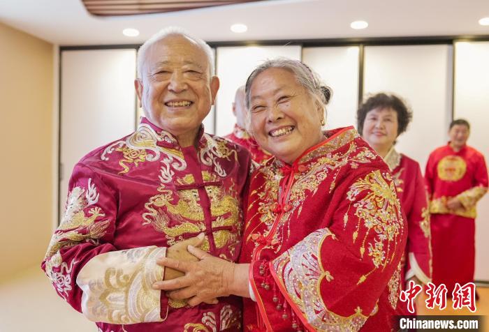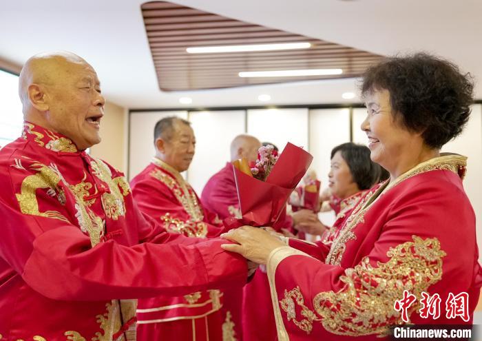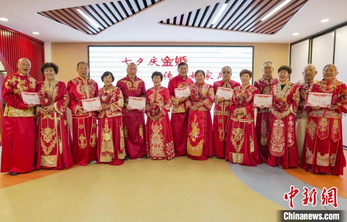 七夕將至,河北省邯鄲市老人走進叢臺區(qū)光明橋街道天璽苑社區(qū),參加“七夕迎金婚 共創(chuàng)好家風”慶典,回憶半個世紀的愛情。金婚慶典儀式經(jīng)過牽手入場、夫妻對拜、執(zhí)子之手、回憶往昔等環(huán)節(jié),見證了金婚夫妻們相濡以沫、互敬互愛的美滿婚姻。金婚老人結合親身經(jīng)歷,分享家風家訓及愛情故事,講述家庭幸福的秘訣,“曬”出婚姻保鮮的秘籍,分享婚姻的經(jīng)營智慧。圖為8月6日,金婚夫妻合影留念。王倩倩 攝