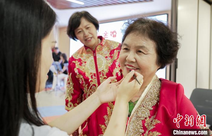 七夕將至,河北省邯鄲市老人走進叢臺區(qū)光明橋街道天璽苑社區(qū),參加“七夕迎金婚 共創(chuàng)好家風”慶典,回憶半個世紀的愛情。金婚慶典儀式經(jīng)過牽手入場、夫妻對拜、執(zhí)子之手、回憶往昔等環(huán)節(jié),見證了金婚夫妻們相濡以沫、互敬互愛的美滿婚姻。金婚老人結合親身經(jīng)歷,分享家風家訓及愛情故事,講述家庭幸福的秘訣,“曬”出婚姻保鮮的秘籍,分享婚姻的經(jīng)營智慧。圖為8月6日,老人正在化妝。王倩倩 攝