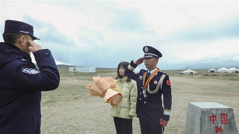 姚萬權(quán)是里孜出入境邊防檢查站的一名民警,8月5日,他的新婚妻子趙詩衡趁著暑假來到了里孜口岸探望他??粗L途奔波前來,又因?yàn)楦咴磻?yīng)疲憊憔悴的妻子,他準(zhǔn)備在海拔4772米的界樁前給妻子補(bǔ)辦一個(gè)求婚儀式,這是屬于戍邊民警的“硬核”浪漫。