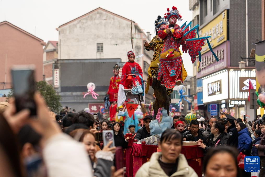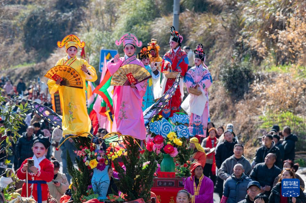 2月11日,在湖南省汨羅市長(zhǎng)樂(lè)鎮(zhèn),人們參加抬閣故事會(huì)。“長(zhǎng)樂(lè)抬閣故事會(huì)”是長(zhǎng)樂(lè)鎮(zhèn)當(dāng)?shù)匾豁?xiàng)傳承千年的元宵節(jié)民俗活動(dòng),2011年入選國(guó)家級(jí)非物質(zhì)文化遺產(chǎn)擴(kuò)展項(xiàng)目名錄。