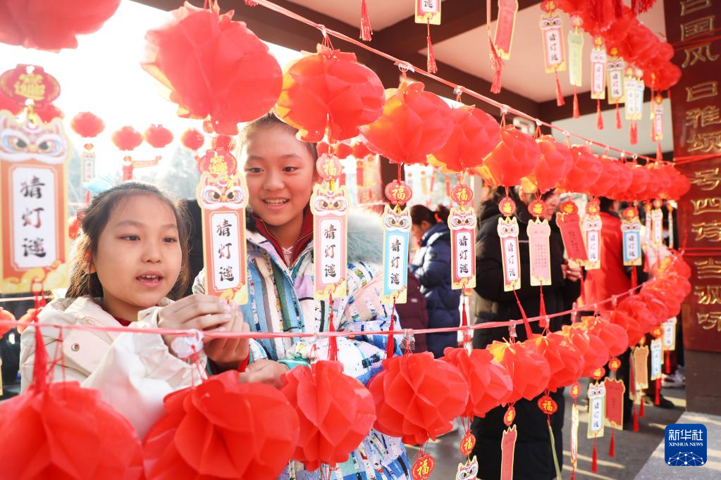 2月11日,在浙江杭州市西湖區(qū)北山街道元宵文化廟會(huì)活動(dòng)中,社區(qū)居民在猜燈謎。