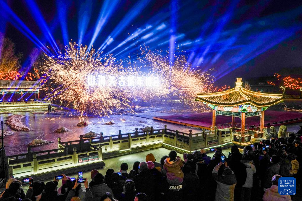 2月10日,游客在河北省秦皇島市山海關(guān)古城景區(qū)觀看打鐵花。