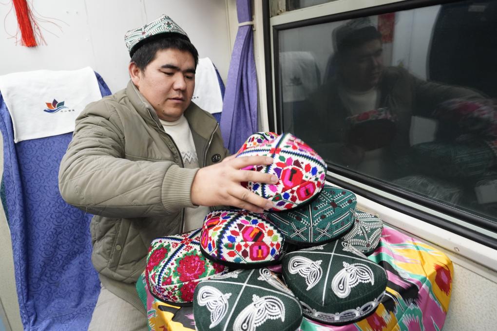 喀什市商戶正在準(zhǔn)備列車“巴扎”的商品。新華社記者白志強攝