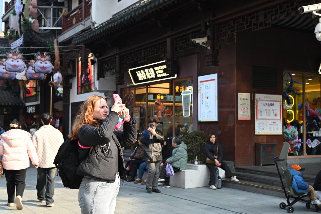 2025年1月21日,一名烏克蘭游客在上海豫園商圈觀光拍照。新華社記者 陳愛(ài)平 攝
