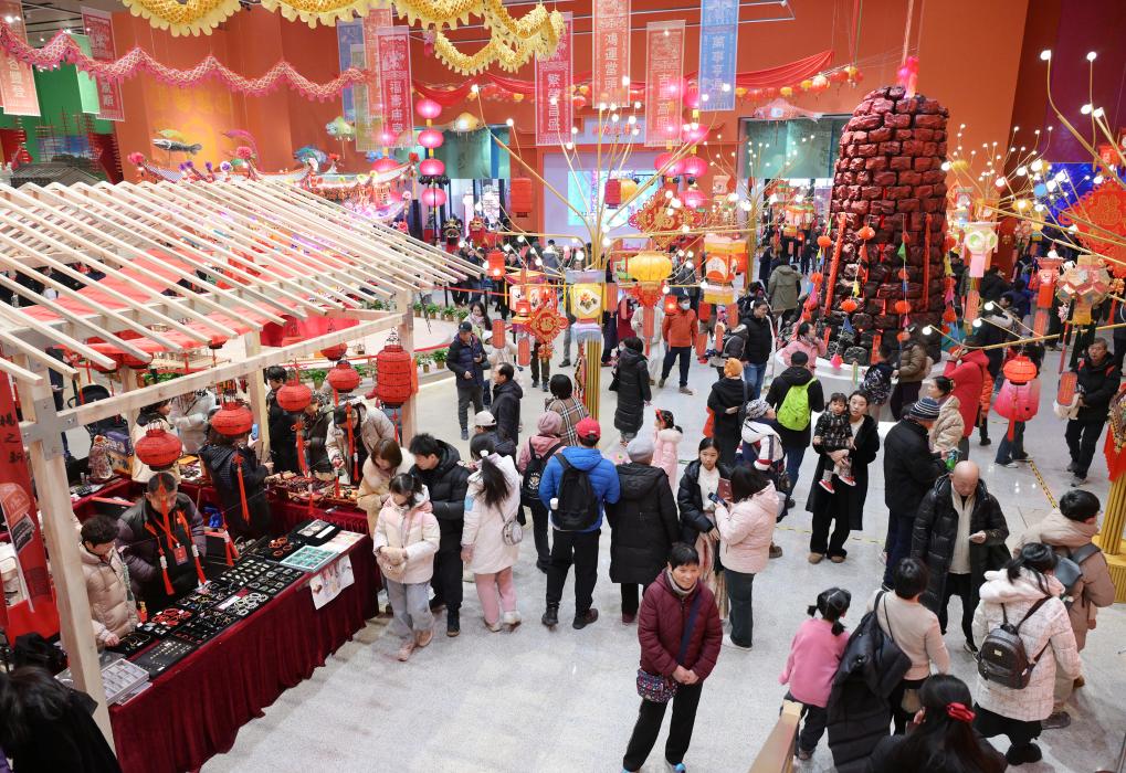 在中國(guó),紅色象征著好運(yùn)與喜悅。北京北四環(huán)外,中國(guó)非物質(zhì)文化遺產(chǎn)館里,一樓南側(cè)的展館已經(jīng)換上紅色“新裝”,慶賀乙巳蛇年的到來(lái)。
