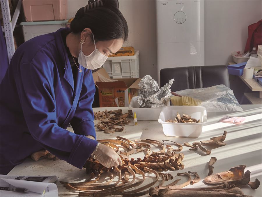 擁措對(duì)桑達(dá)隆果墓地出土骨骼進(jìn)行分類(lèi)觀察。