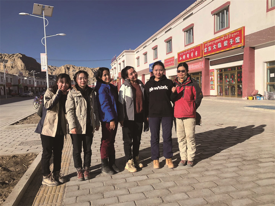 高原女子考古隊(duì)”部分隊(duì)員在阿里地區(qū)札達(dá)縣城合影。