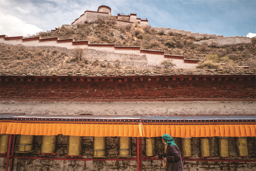 一位老人在布拉達(dá)宮腳下的轉(zhuǎn)經(jīng)長(zhǎng)廊轉(zhuǎn)經(jīng)。石丕民 攝