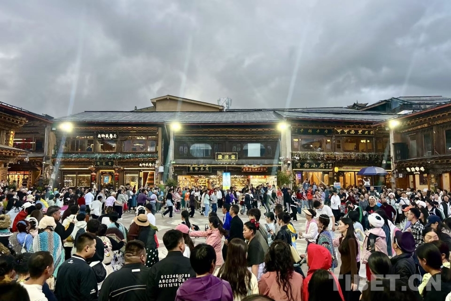 圖為在熙攘的獨克宗古城內(nèi),游客們和當?shù)匕傩仗伹f(2025年8月攝) 攝影:邊子捷