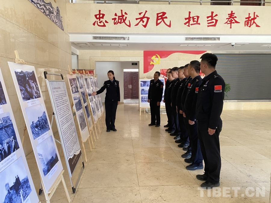 圖為吉隆出入境邊防檢查站組織民警參觀主題圖片展 攝影:肖富貴