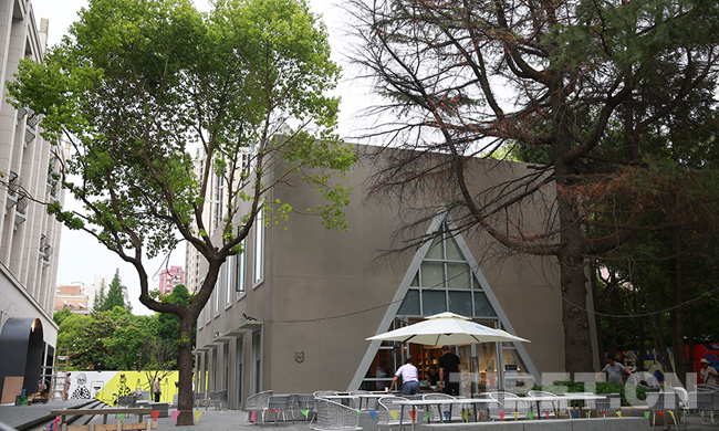 綠蔭下的長寧區(qū)萬科上生新所,其前身為上海生物制品研究所,目前這里的更新建設(shè)已接近尾聲。攝影:楊月云