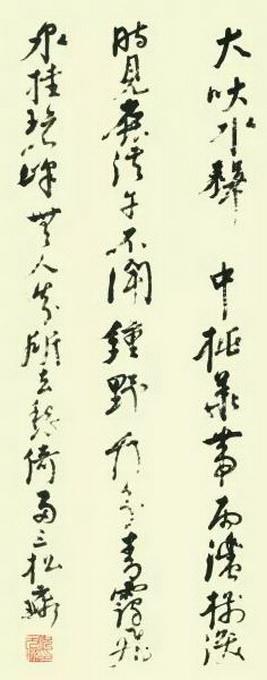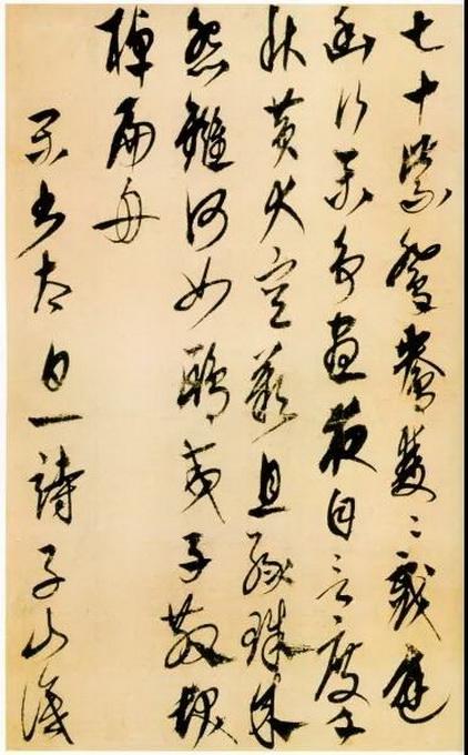 其草書豎幅《李白古風詩卷》,縱35.0cm,橫63.8cm,現(xiàn)藏日本東京國立博物館。書風勁健清新,善以懸腕作書,行筆爽利干脆,結(jié)體縱長,流暢而不浮滑,但是往往在最后一筆用力一挑或一頓,難免顯得有些刻露。在當時世趨趙孟頫書風的情況下,能走出自己的道路,作為杰出的少數(shù)民族書法家特立于書壇。