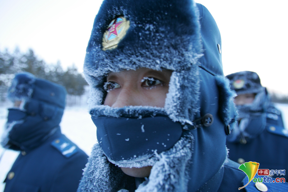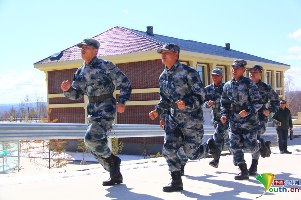 空軍漠河雷達(dá)站的官兵進(jìn)行耐寒訓(xùn)練??哲娔永走_(dá)站供圖