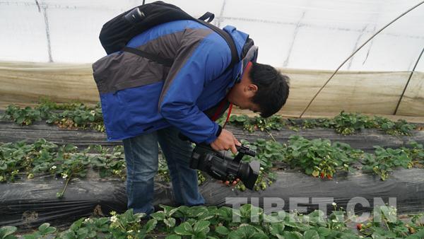 圖為記者走進東陵村現(xiàn)代新型產(chǎn)業(yè)園的草莓大棚 攝影:次仁頓珠