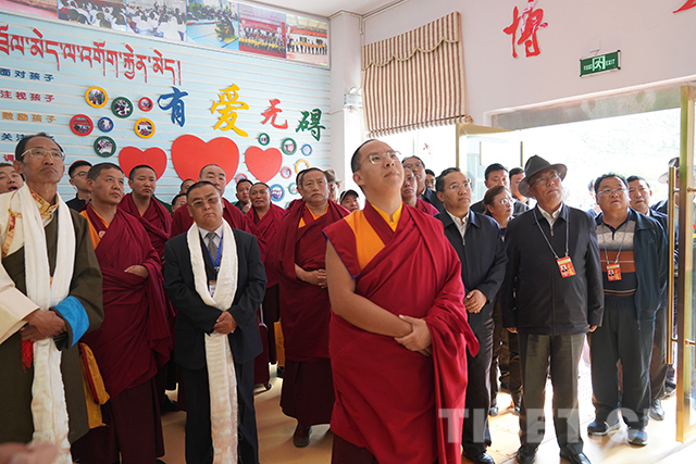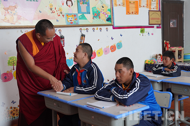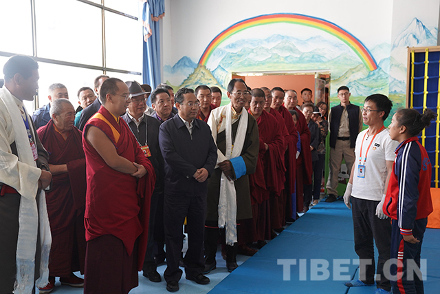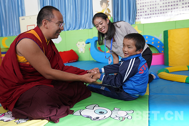 “喜歡這份工作嗎?”“愿意做這份工作嗎?”在康復(fù)區(qū)參觀調(diào)研時(shí),十一世班禪仔細(xì)詢(xún)問(wèn)老師們的工作情況并對(duì)他們說(shuō):“你們?cè)谶@里為這些殘障的孩子奉獻(xiàn),很了不起,向你們致敬。”