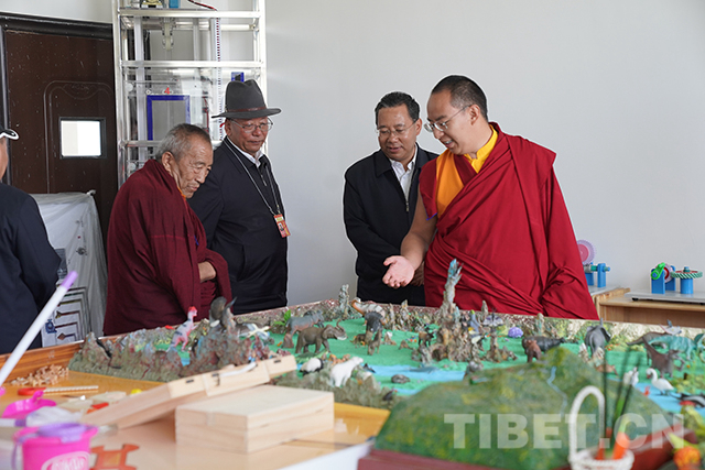 圖為十一世班禪參觀學(xué)校殘疾人職業(yè)教育中心。攝影:王淑