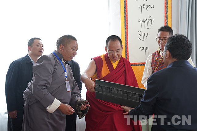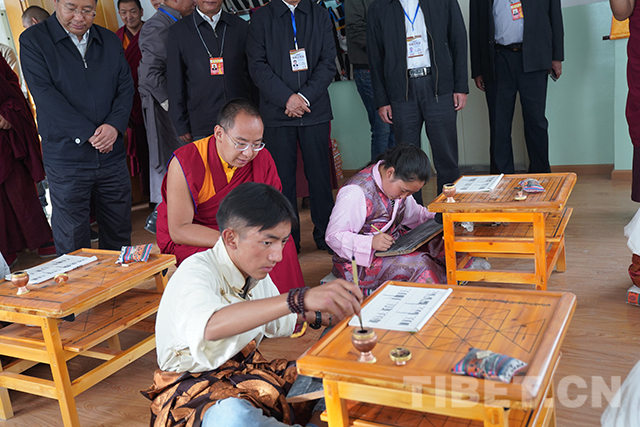 十一世班禪來(lái)到藏文書(shū)法室。攝影:王淑
