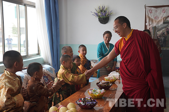 中國(guó)西藏網(wǎng)訊 正在西藏自治區(qū)山南市考察調(diào)研、開(kāi)展佛事活動(dòng)的全國(guó)政協(xié)常委、中國(guó)佛教協(xié)會(huì)副會(huì)長(zhǎng)班禪額爾德尼o確吉杰布19日來(lái)到山南市特殊教育學(xué)校和山南市兒童福利院調(diào)研并看望孤殘兒童。