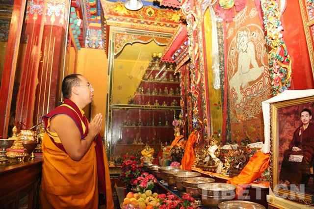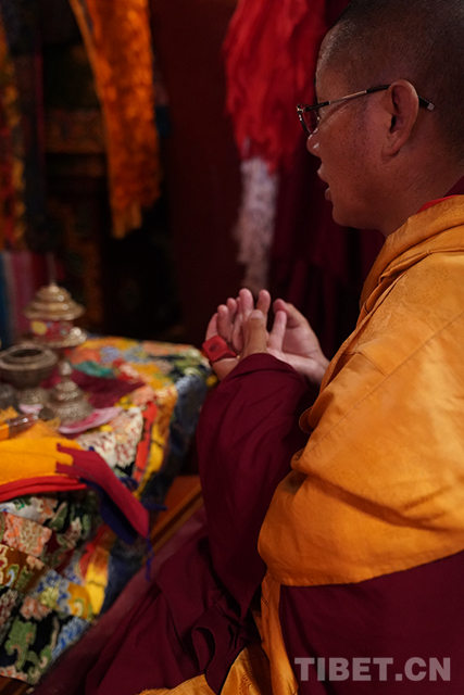圖為十一世班禪朝拜珍珠唐卡殿。攝影:達(dá)娃