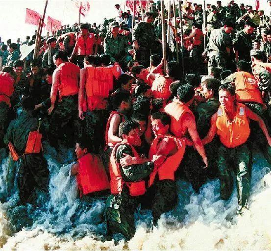 而那張官兵們站在決堤的激流中,以身體阻擋洪水的照片,深刻印了全國(guó)人民的腦海中。