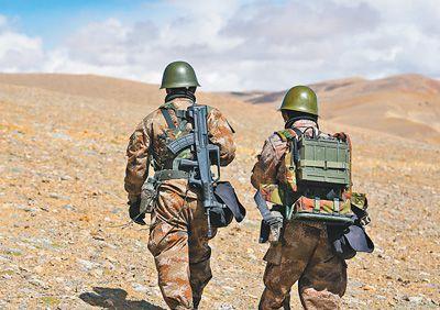 西藏軍區(qū)某部崗巴邊防營(yíng)官兵在無(wú)人區(qū)巡邏。