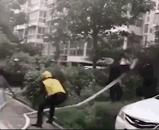 廣東佛山11歲男孩爬上塑料棚失足懸空