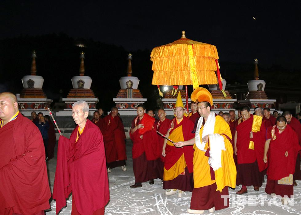 塔爾寺僧人向班禪大師敬獻(xiàn)曼扎。