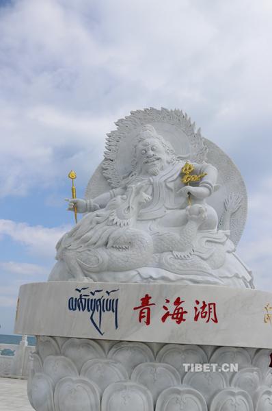 青海湖祭湖臺前的神像。