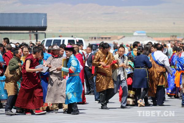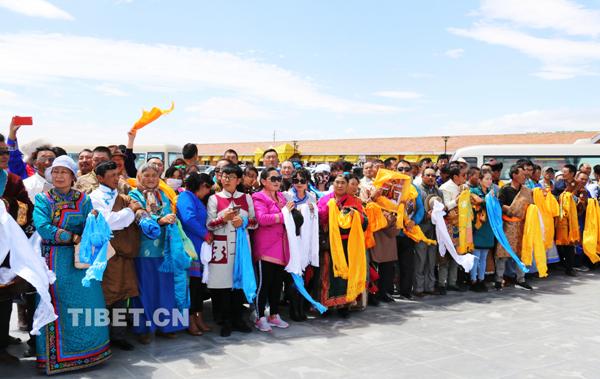 海西州蒙古族藏族信眾歡迎十一世班禪的到來。