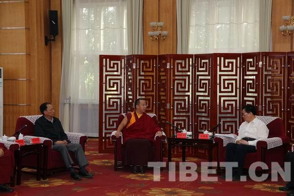 在玉樹州博物館,班禪對可可西里申請世界自然遺產成功表示由衷的祝賀,并對玉樹州物質文化和非物質文化遺產的保護和抗震救災展示表現出濃厚的興趣。