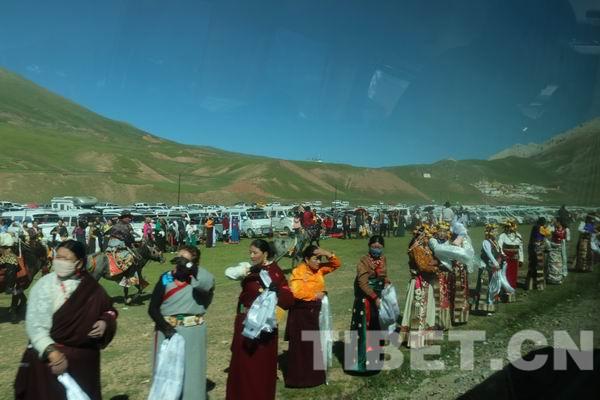 治多縣府是加吉博洛鎮(zhèn),當班禪大師的車隊到達時,幾乎全縣的人都趕來迎接遠道而來的仁波切?!鲌D為翹首以盼等待班禪大師的信教群眾。
