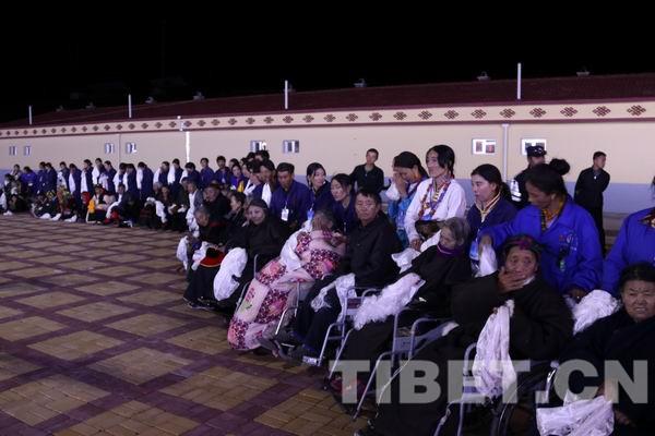 摸頂過程中還發(fā)生了很多感人的故事。有些年紀大、行動不便的老人,周圍的人都主動幫助他們提前接受班禪大師的摸頂;有些人因為在陽光下排隊等候時間太長,昏厥過去,馬上就得到了當?shù)蒯t(yī)療志愿者的救治?!鲌D為等待班禪大師摸頂賜福的人群中,殘疾人和年紀大的信教群眾得到優(yōu)先照顧。