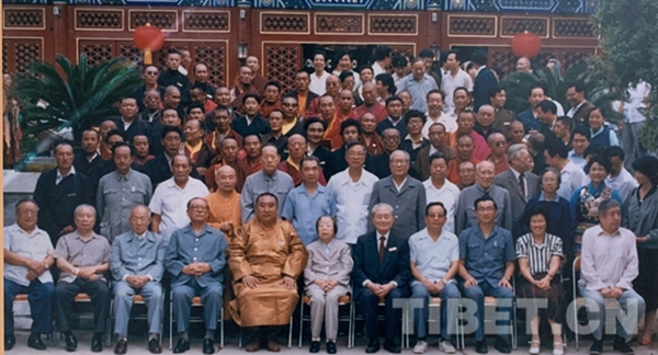 圖為參加中國藏語系高級佛學(xué)院成立大會的全體領(lǐng)導(dǎo)與師生合影。