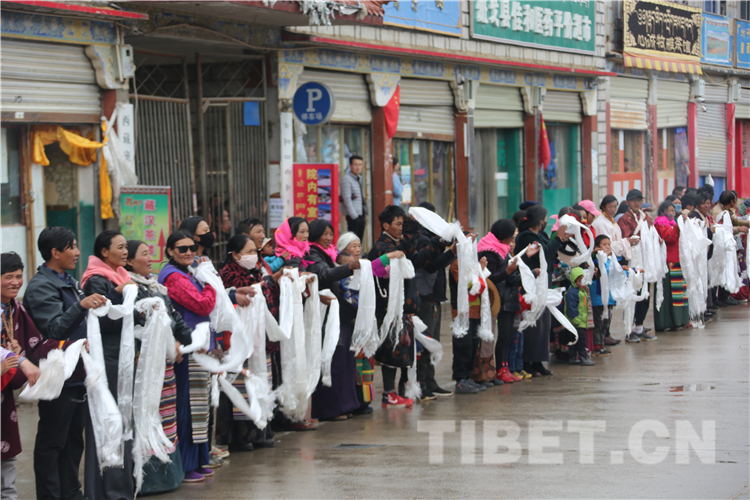 恰逢“羌塘恰青格薩爾賽馬藝術(shù)節(jié)”開幕,各地的僧俗信教群眾從方圓幾百公里的牧區(qū)趕來,他們身著盛裝,手捧哈達(dá),滿含期待地在那曲市道路兩邊恭迎全國政協(xié)常委、中國佛教協(xié)會副會長、中國佛教協(xié)會西藏分會會長班禪額爾德尼確吉杰布重返家鄉(xiāng)那曲。