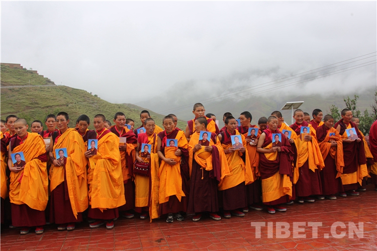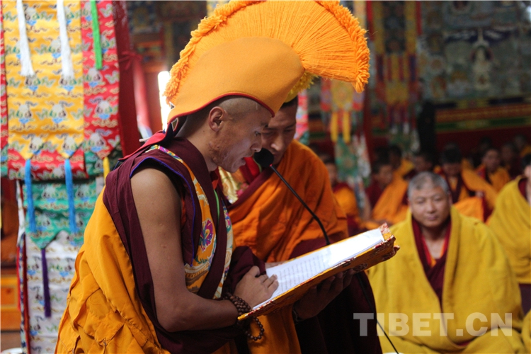 圖為桑珠孜區(qū)皓寺僧人為十一世班禪念誦頌詞 攝影:王淑