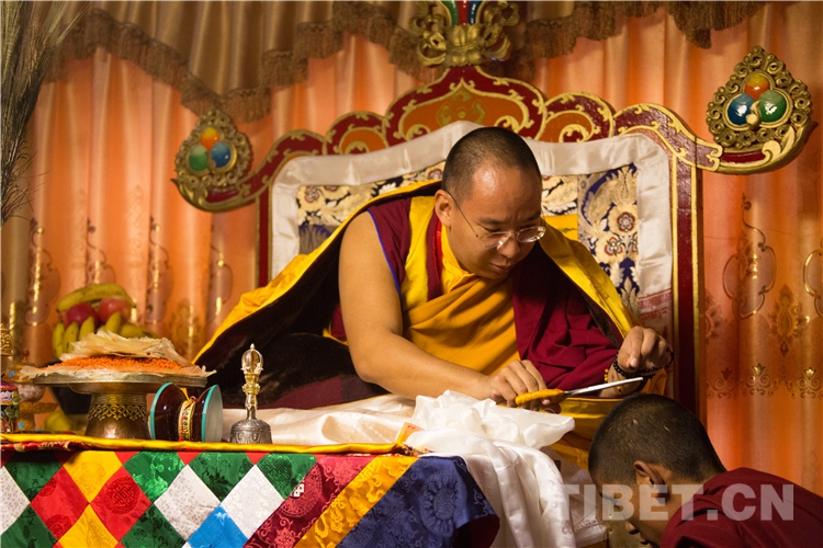 圖為十一世班禪為昂仁縣曲德寺僧人剃度 攝影:王淑