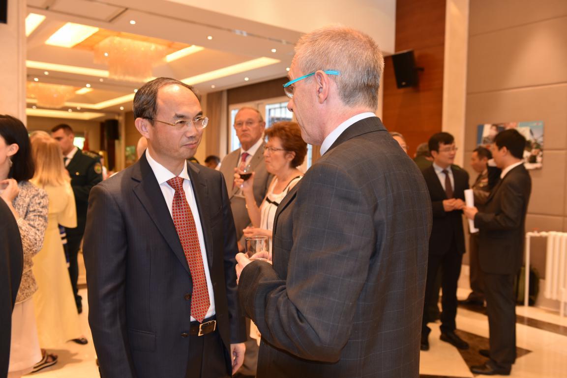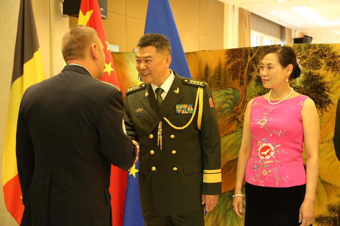 中國駐比利時大使曹忠明、駐歐盟使團團長張明大使,歐盟軍委會主席格拉齊亞諾上將、北約國際軍參部合作安全部部長托夫特少將、比國防參謀部代表德克羅普中校等歐盟、北約、比利時軍政官員,部分國家駐歐盟、北約、比利時使節(jié)、武官、軍事代表以及各界友好人士等約400余人出席招待會。