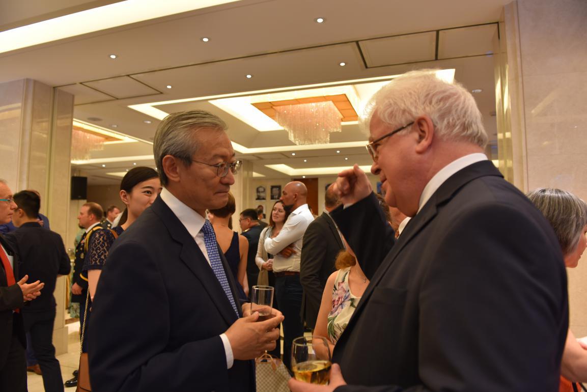2019年7月24日,中國駐歐盟使團軍事代表姚勤大校和駐比利時使館國防武官李琰文大校在駐比使館聯(lián)合舉辦“八一”建軍節(jié)招待會,熱烈慶祝中國人民解放軍建軍92周年。