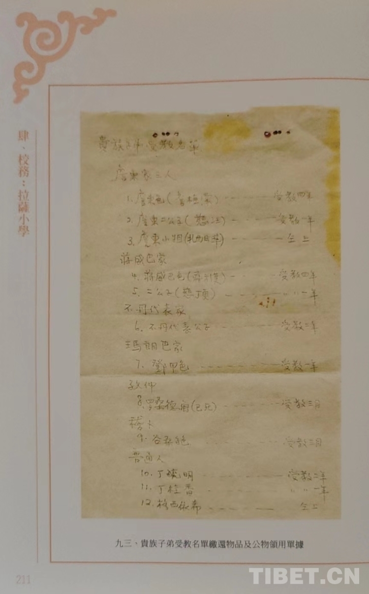 據(jù)著名學者赤烈曲扎回憶,這個學校跟當時內(nèi)地的中小學校差不多,里面分幾個年級,一二年級還教藏文,三四年級以后就沒有藏文課了。主要有國語、算術、社會、公民、自然、常識、作文英文、圖畫、音樂等課程。